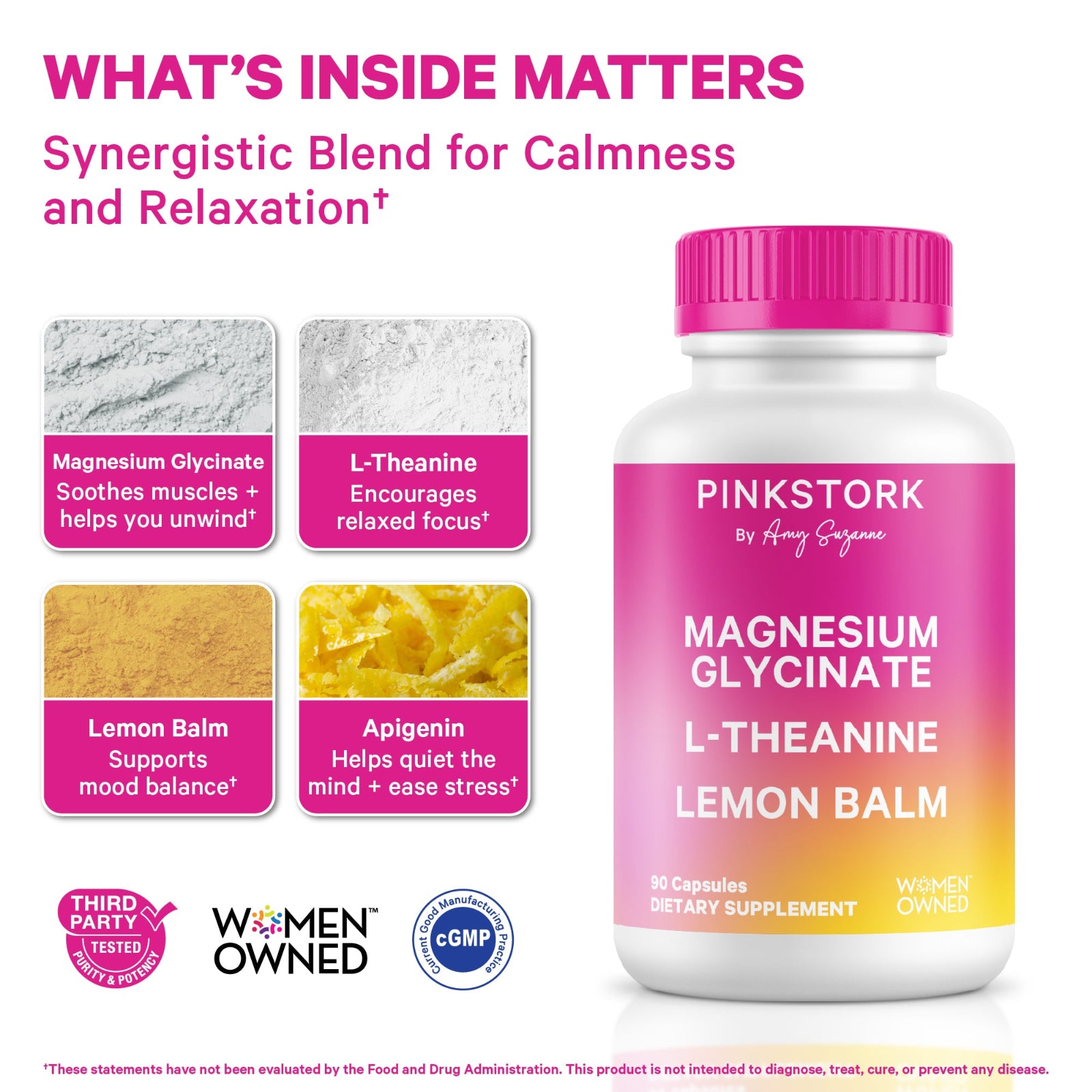 Magnesium Glycinate, L-Theanine, Lemon Balm